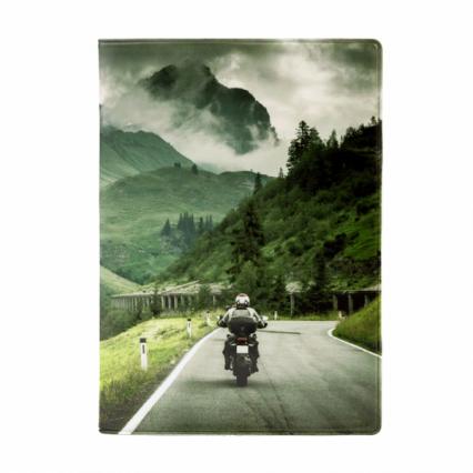 Обложка для автодок. KW "Мотоцикл в горах"