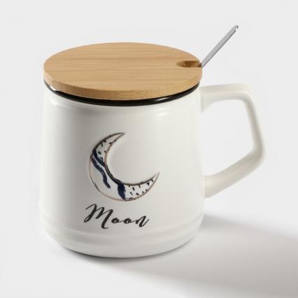 Кружка 350 мл "Луна" с крышкой и ложкой