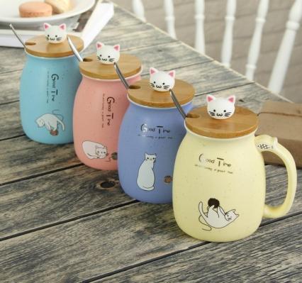 Кружка 500 мл "Котик" с крышкой и ложкой