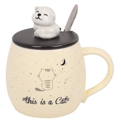 Кружка 380 мл Кокос "Кошечка" с крышкой и ложкой